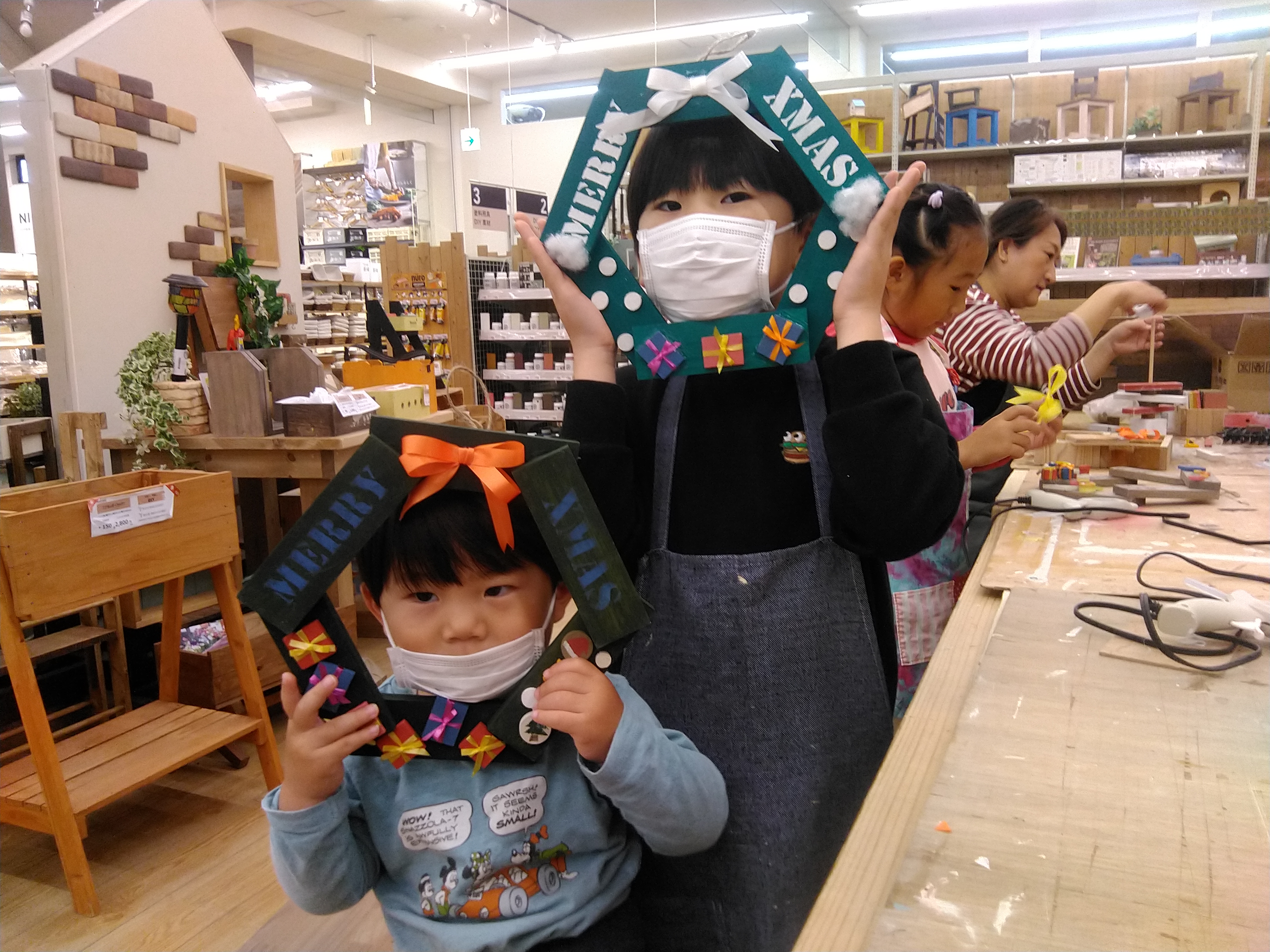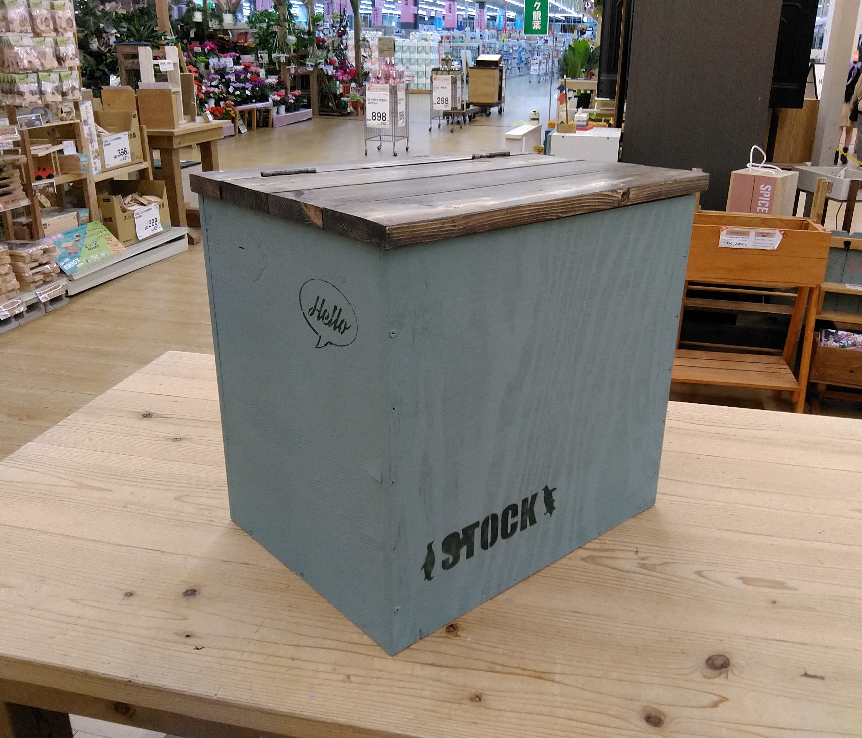 カット済みの木材を電動工具で組み立て、水性塗料やワックスなどでペイントします。小さめの観葉植物や多肉植物のディスプレイにおすすめの作品です。それぞれのボックスは取り外して持ち運べるので、お手入れや入れ替えも便利です。