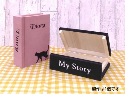 【午前1回の開催です】カット済みの木材を木工用接着剤で組み立てます。水性塗料でペイントし、ステンシルで飾りましょう。ハガキが入るくらいのサイズの本型収納BOXです。