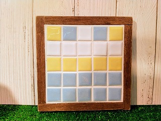 【午前1回の開催です】木枠にワックスでペイントし、お好みに配置したタイルを目地材で埋めます。色使いを工夫して、おうちごはんが楽しくなる鍋敷きを作りましょう。プラントコースターにもおすすめです。