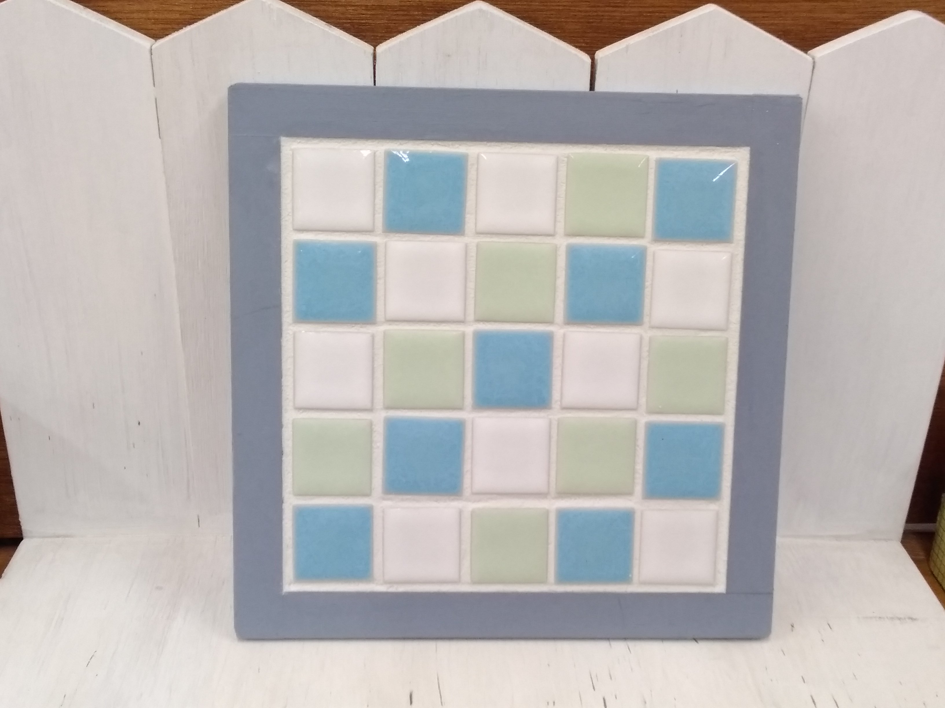 ホイップクリームのような下地塗料をペイントし、タイルの石畳が並ぶ小さな庭付きのおうち型多肉プランターです。※寄せ植えはございません。