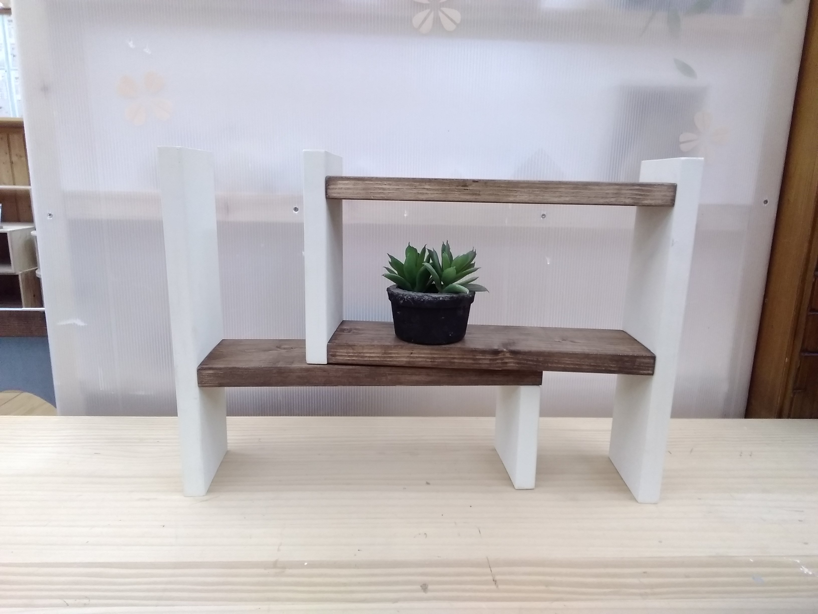 【午前1回の開催です】カット済み木材を電動工具で組み立て、ワックスや水性塗料でペイントします。重ねる位置によって幅を調整して使えます。ねじ打ちの本数や工程が少なく、初めてのDIYにもぴったりです。