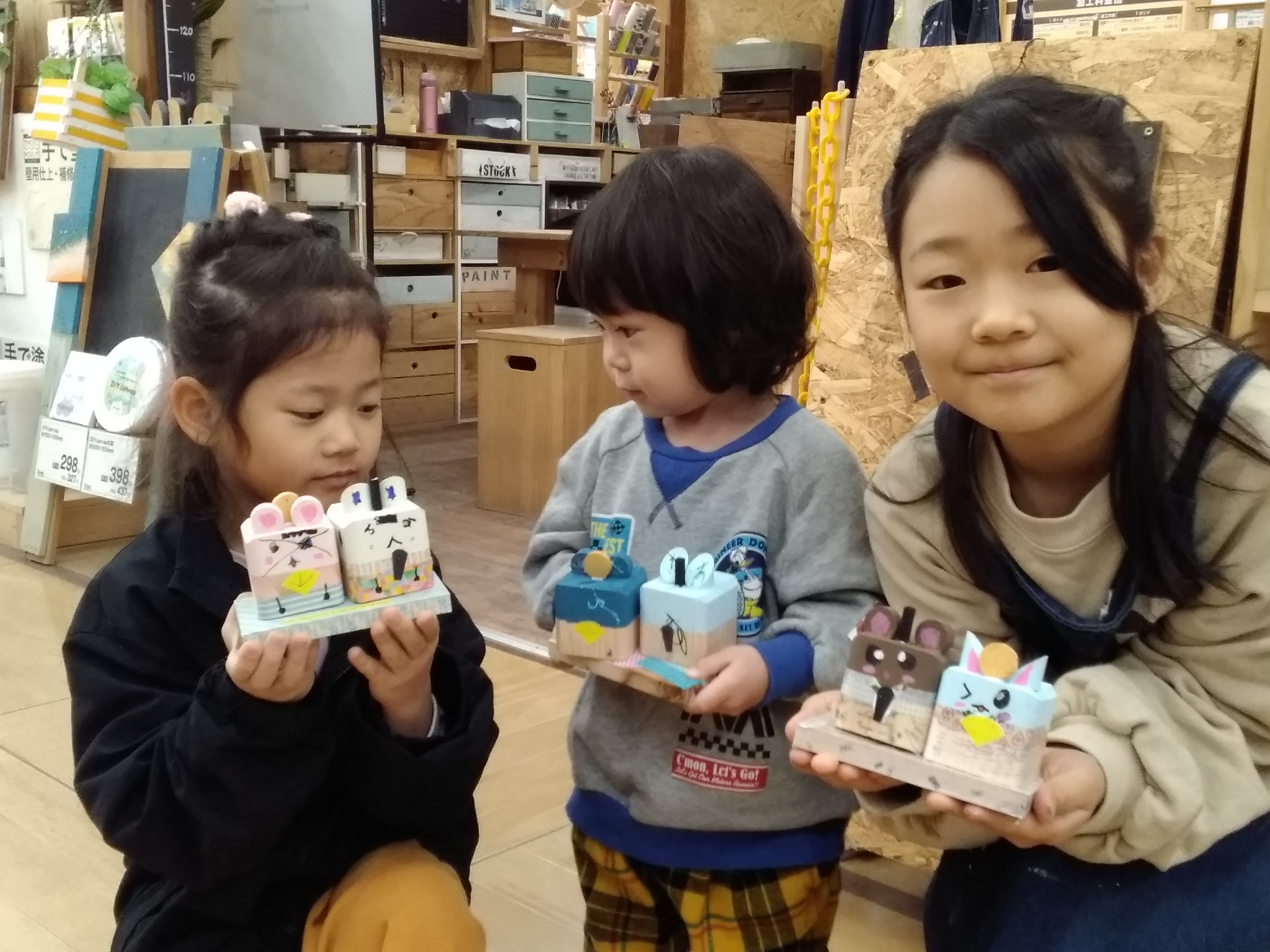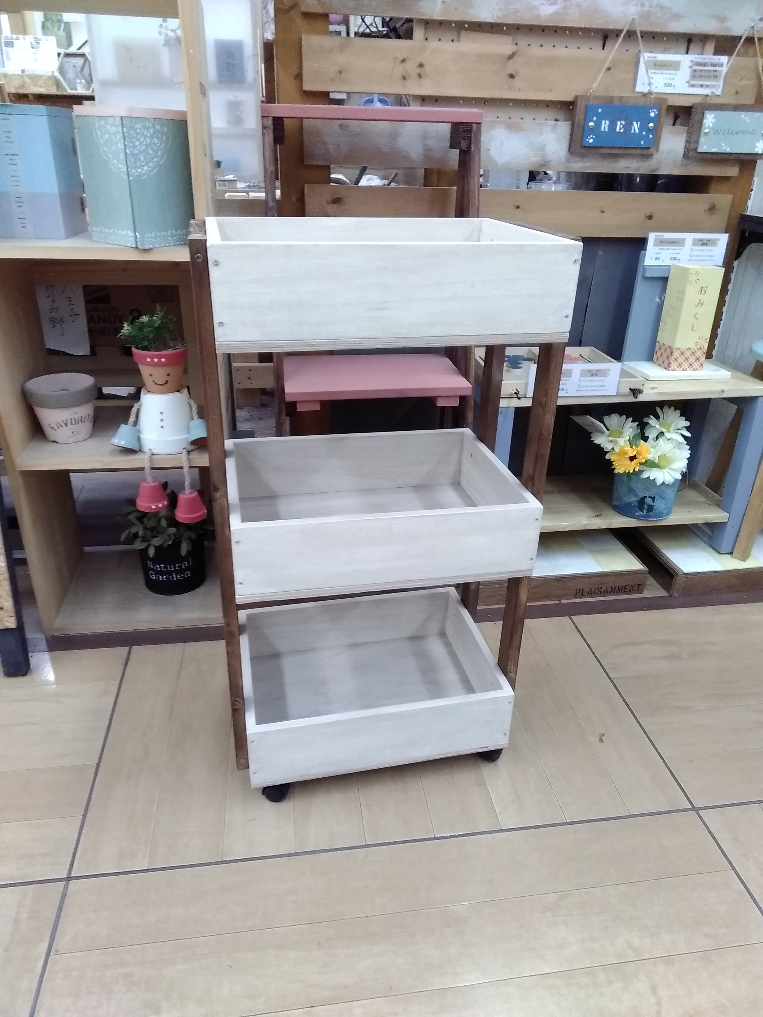 【午前1回の開催です】カット済の木材を電動工具で組み立て、水性塗料やワックスで塗装します。中に棚があるのでコップの収納などキッチン周りの収納に大活躍♪キッチンやリビングテーブルの上などちょっとした空間のインテリアにも可愛い作品です。