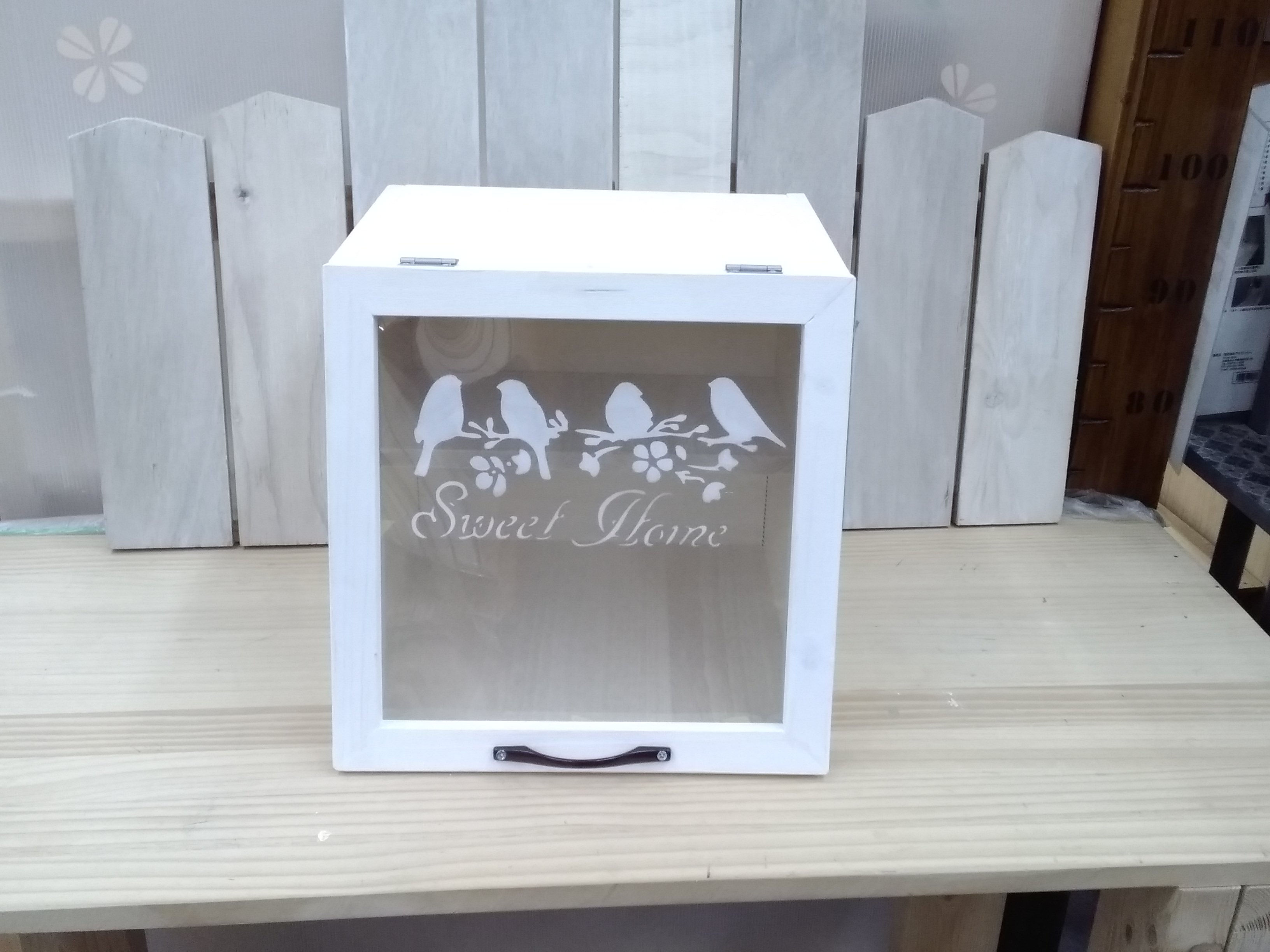 カット済みの木材を電動工具で組み立て、ペイントします。壁掛け式のオリジナル作品です。大(幅200mm)・小(幅150mm)2個製作します(寄せ植えはございません)。