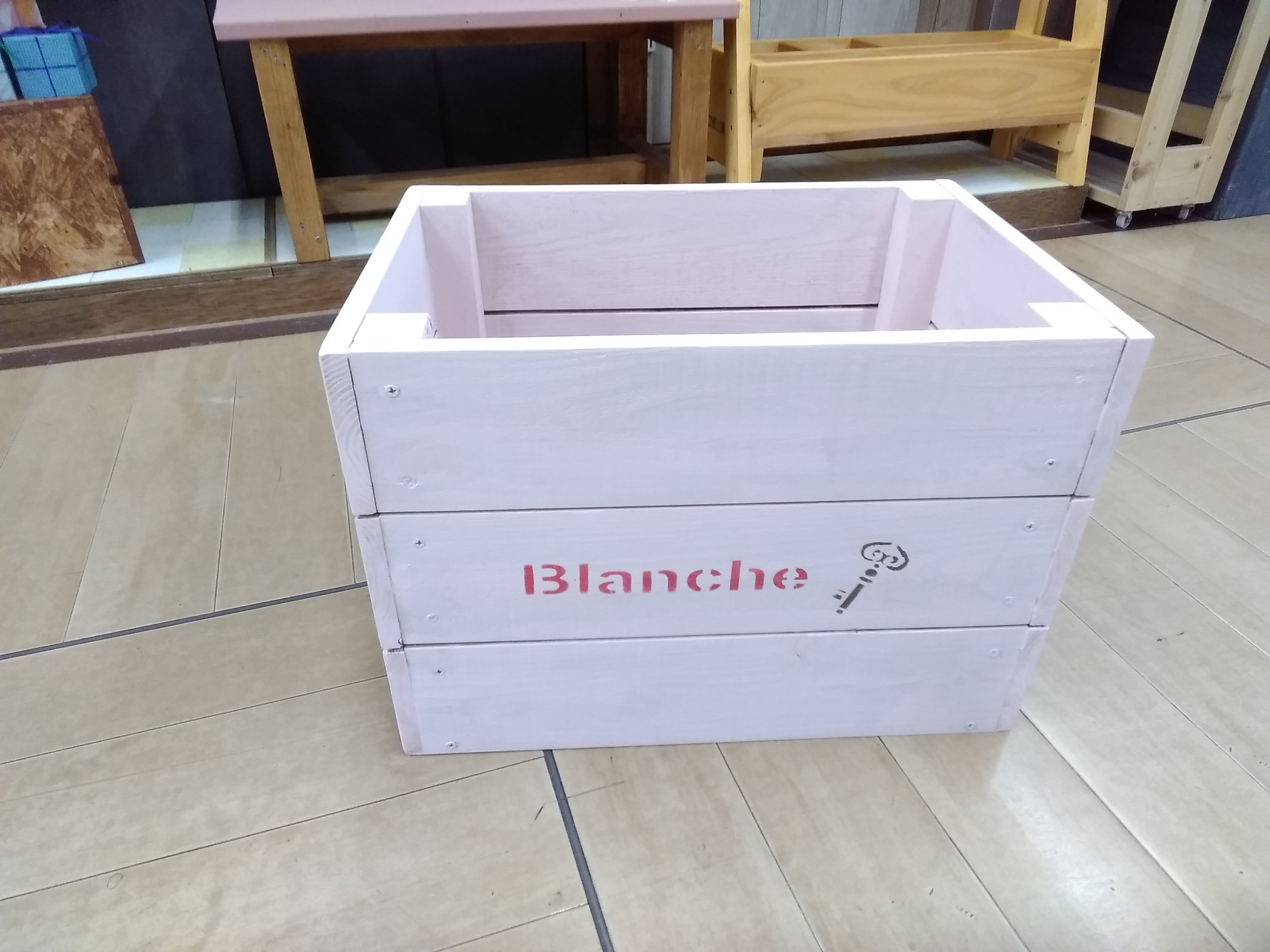 カット済みの木材を電動工具で組み立て、ワックスでペイントします。懐かしのイスは横にして作業台として使う他、花台やサイドテーブルとしても活躍する注目の作品です。