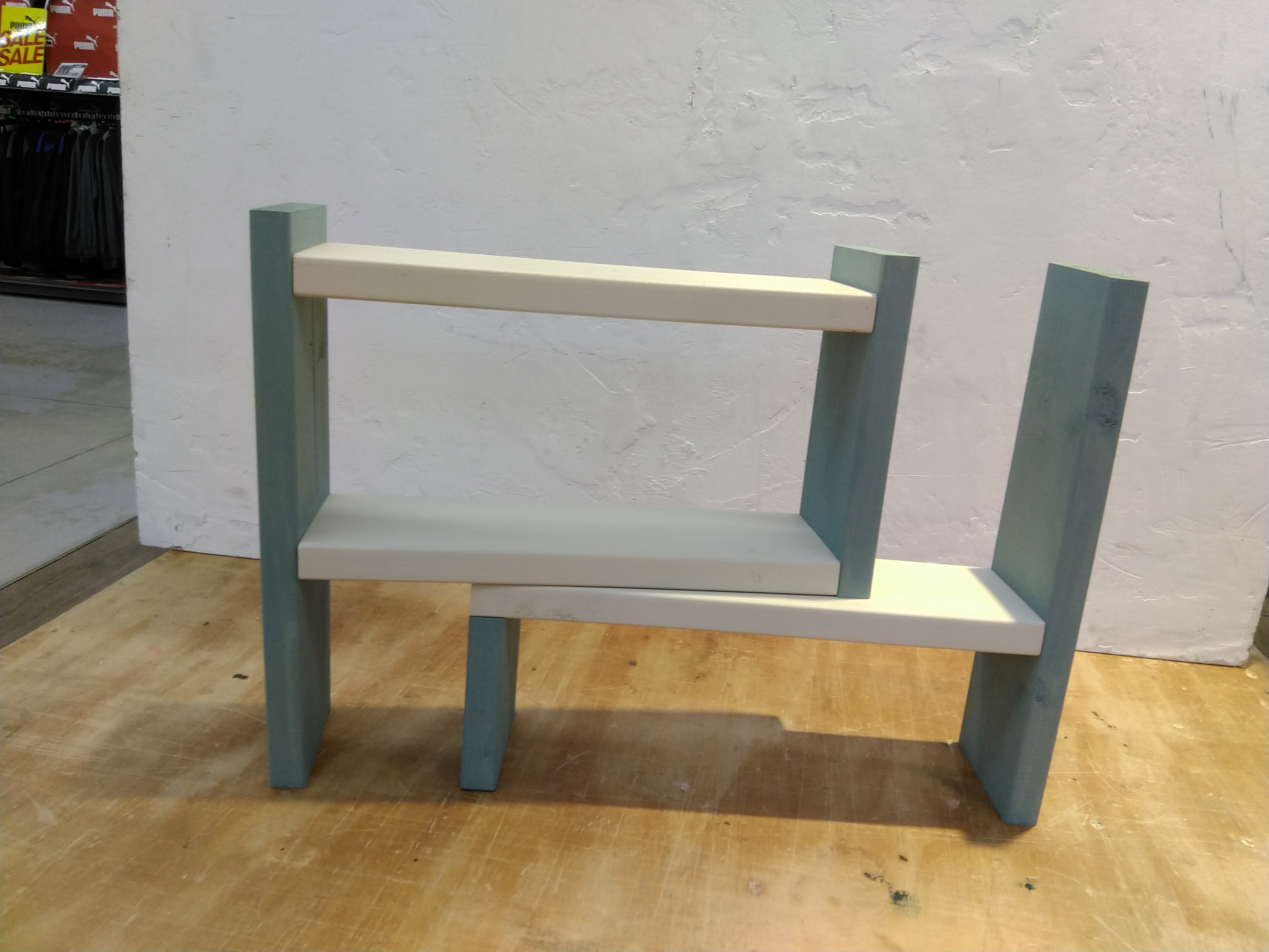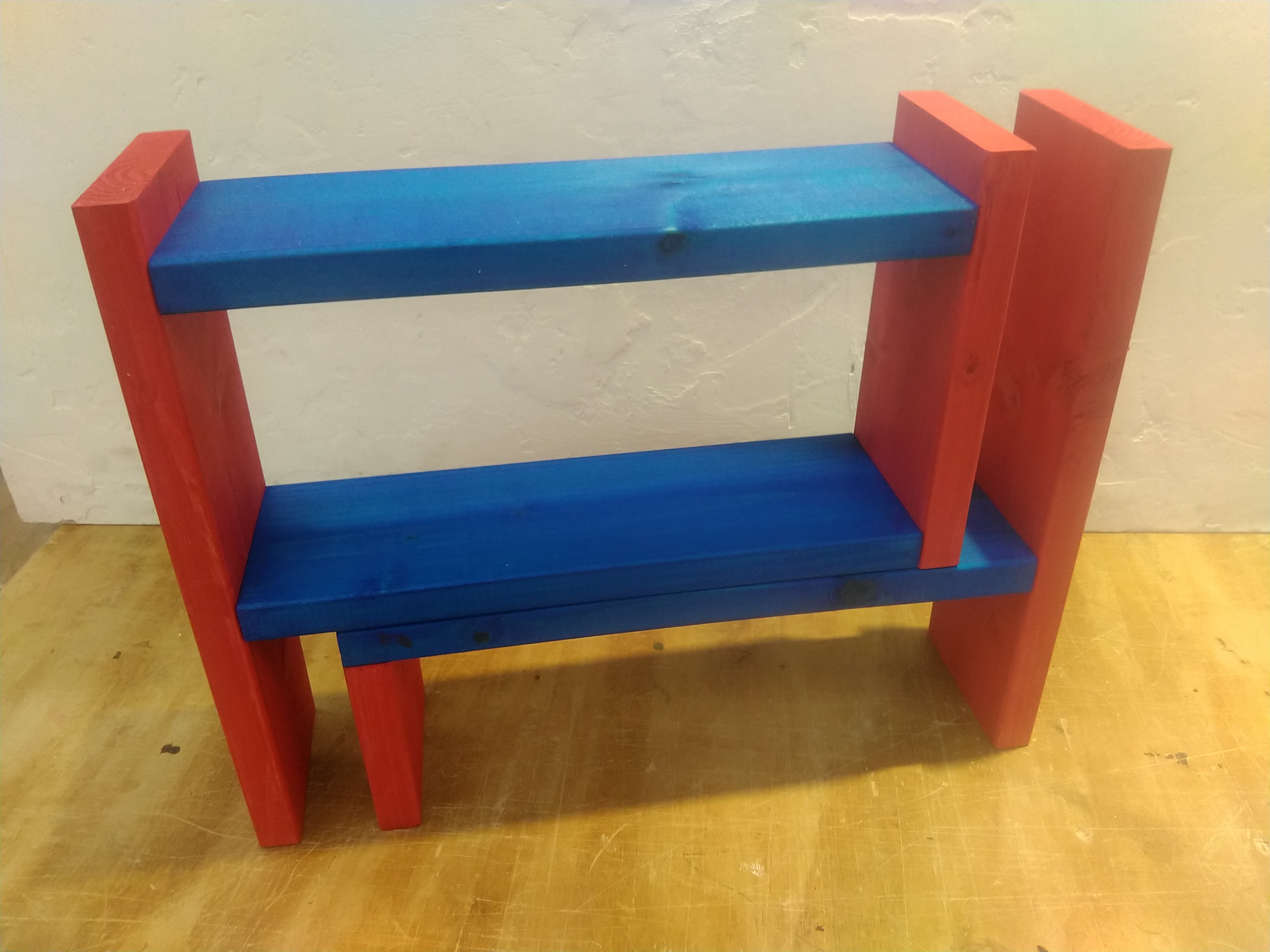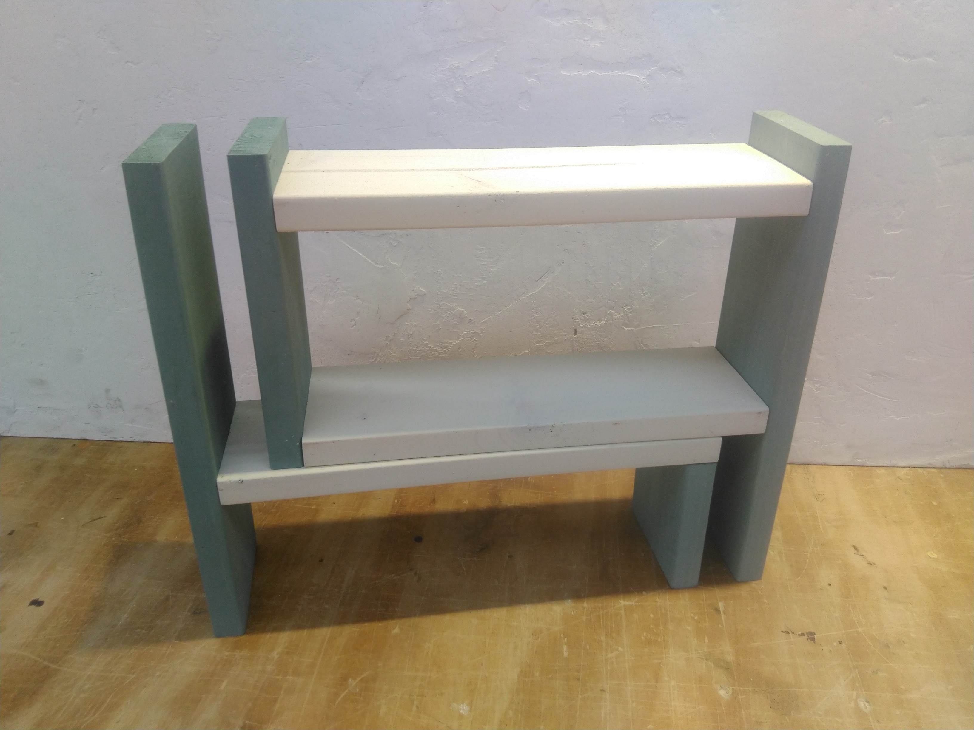 【午後1回の開催です】カット済みの木材を電動工具で組み立て、水性塗料またはワックスでペイントして仕上げます。調味料の収納や小物棚としても活躍する、使い勝手のいいラックです。
