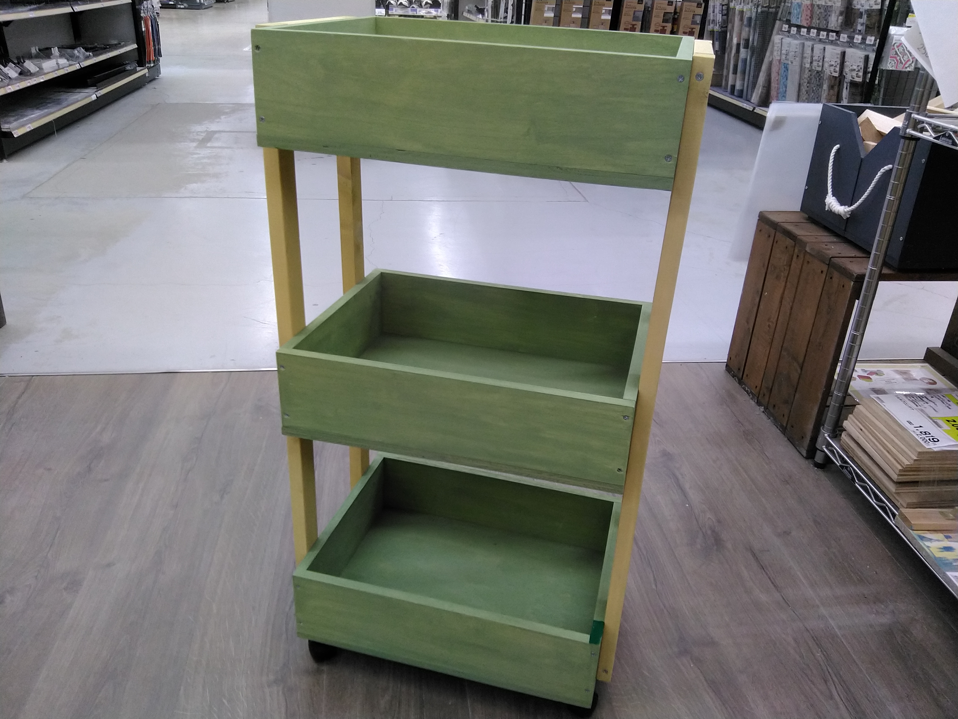 【午後1回の開催です】収納が3段に分かれているので、つかいわけができる便利な作品です!キャスター付きで簡単に移動ができます。インテリアに合わせてお好みの色でつくってみませんか?