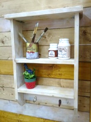 【午前1回の開催です】カット済みの木材を電動工具で組み立て、水性塗料で塗装します。壁掛けて使えるラックをつくりませんか?アクセサリーの棚や玄関のカギ置きなどにも活躍しそう!収納スペースを増やしたり飾り棚として使ったりできるので便利です♪【※画像最下段のフックは別売です】