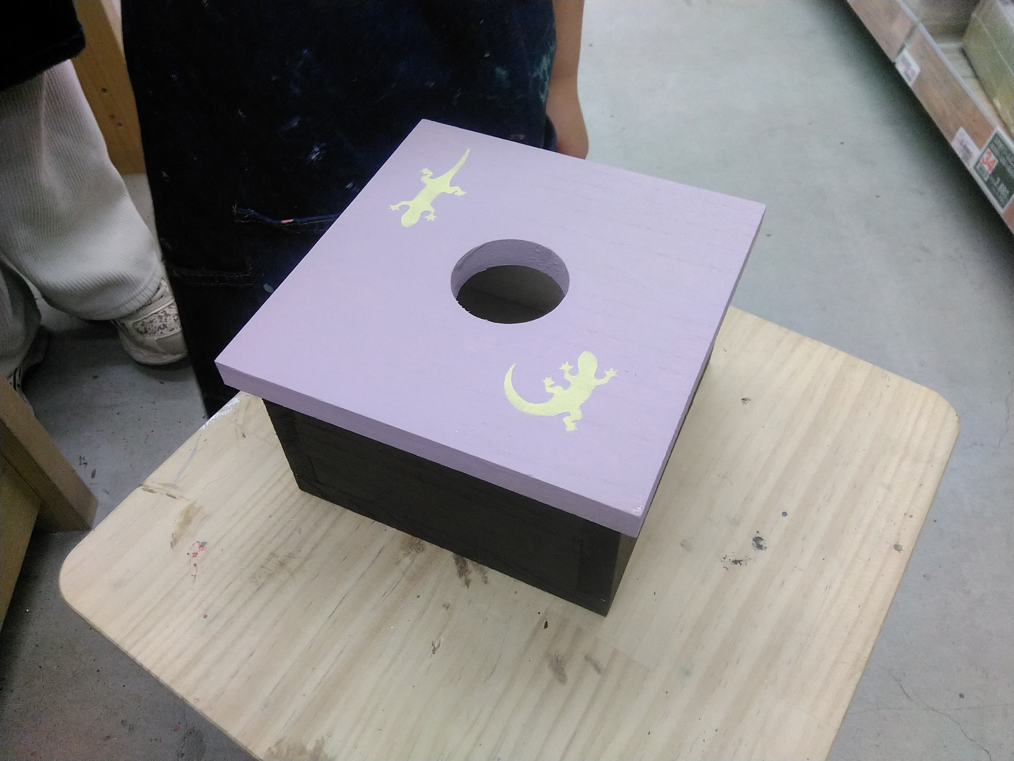 座面が丸く、さまざまな場所に合う作品です。スツールとしてだけでなく、ぬいぐるみや植物を置いてお部屋に飾っても◎電動ドライバーの使い方やダボ加工、塗装といろんな工程を学ぶことができる、DIYのスキルアップとしても人気のメニューです。