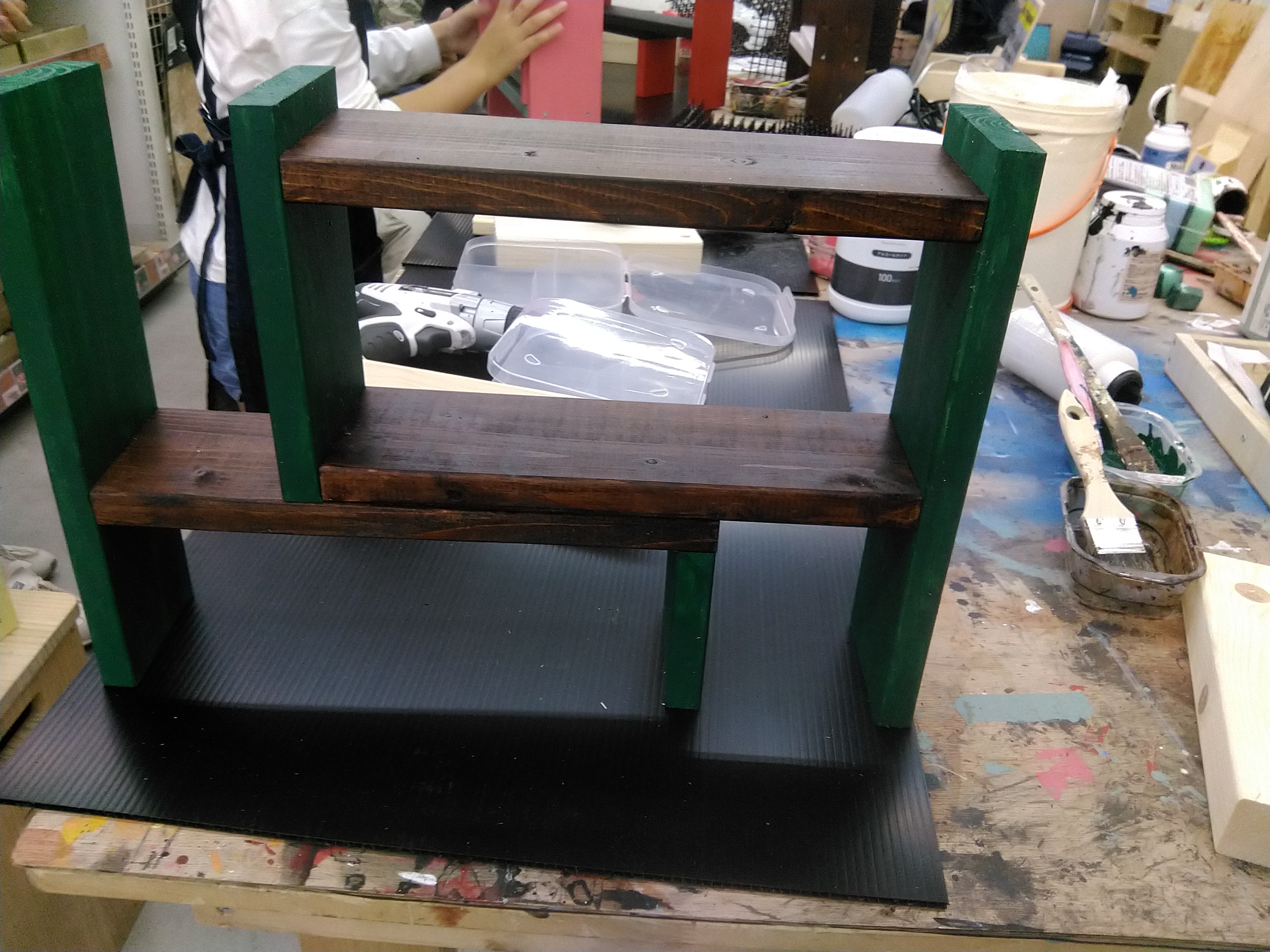 【午前1回の開催です】【♪350×270mm以上の布をご持参ください。お客さまの好みの生地で製作が可能です♪】カット済みの木材を電動工具で組み立て、広々としたピンクッションがついた収納BOXを作ります。お人形用の収納付きベッドとして、お子さまにも人気の作品です。