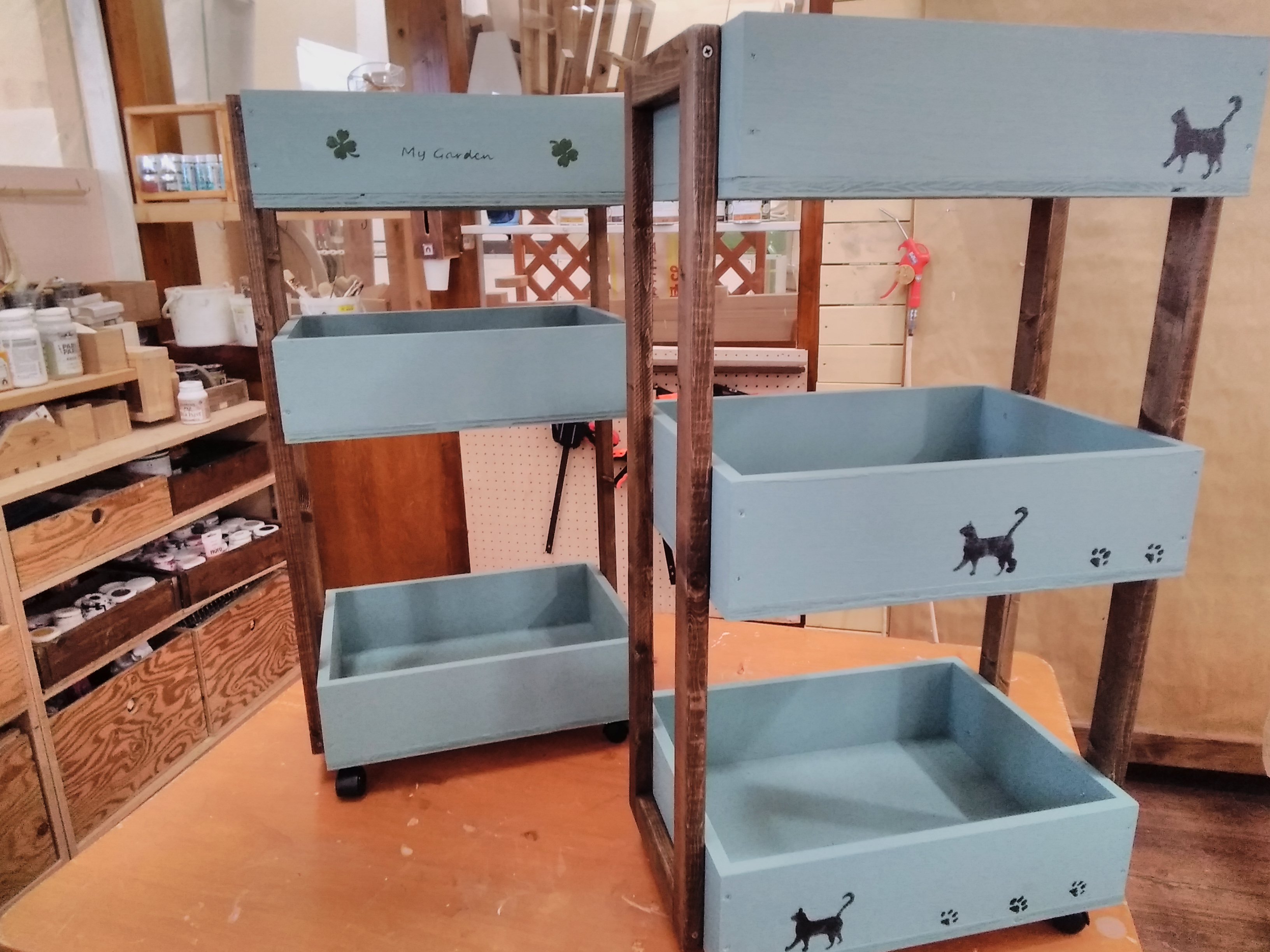 【午前1回の開催です】キッチンや洗面所で活躍するスリムタイプのワゴンです。水性塗料やワックスでお部屋に合う色に仕上げることができます。出し入れに便利な前後に動くキャスター付きです。設置する場所にスリムワゴンを置いた状態を想定しておくのがおすすめです♪