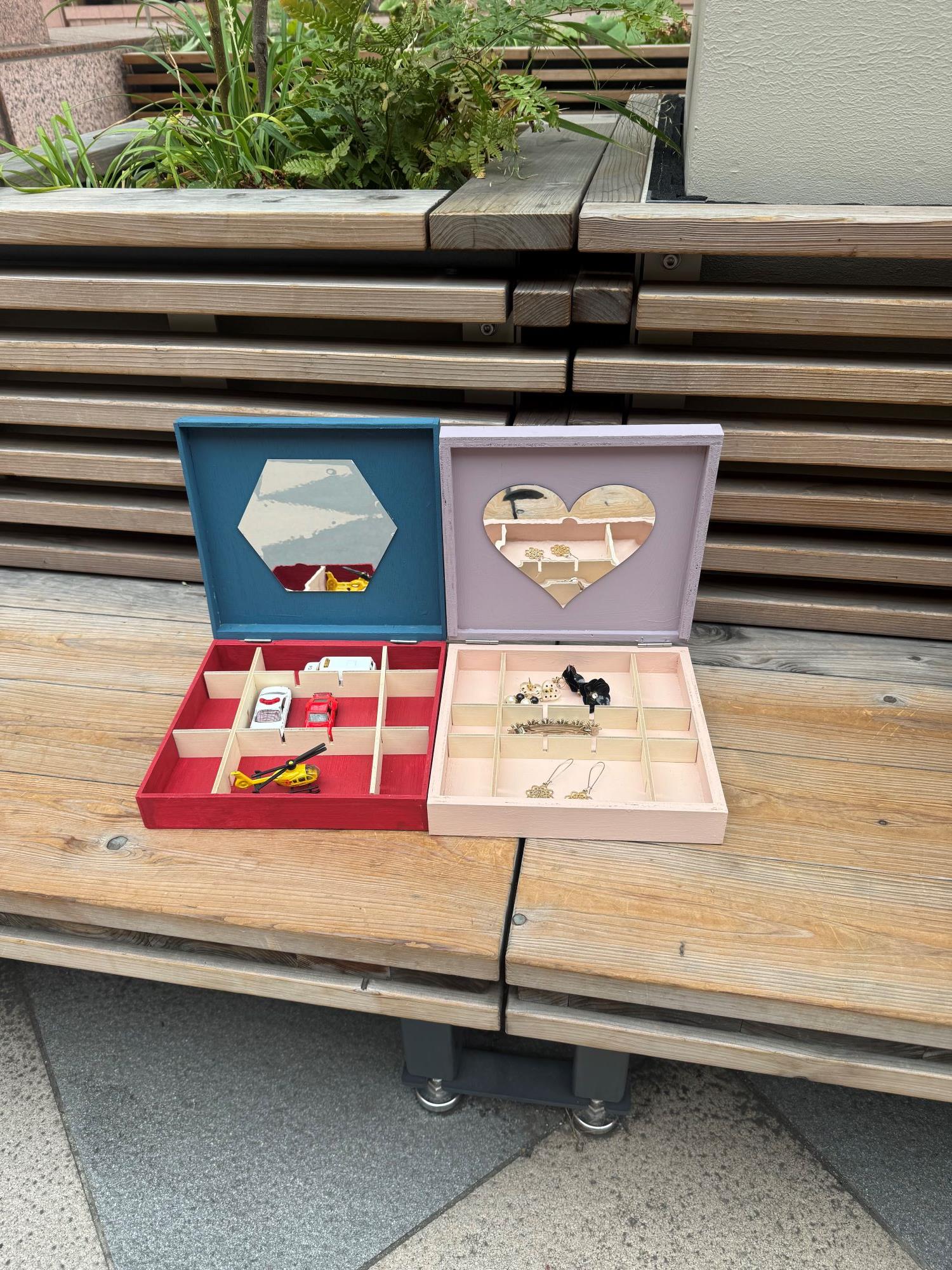 好評だったコンパクトドレッサーがワークショップに復活!入れ物に色を塗り、蝶番と鏡をで取り付け、しきりを使ってアクセサリーなどを収納しましょう!【対象年齢:4歳~】