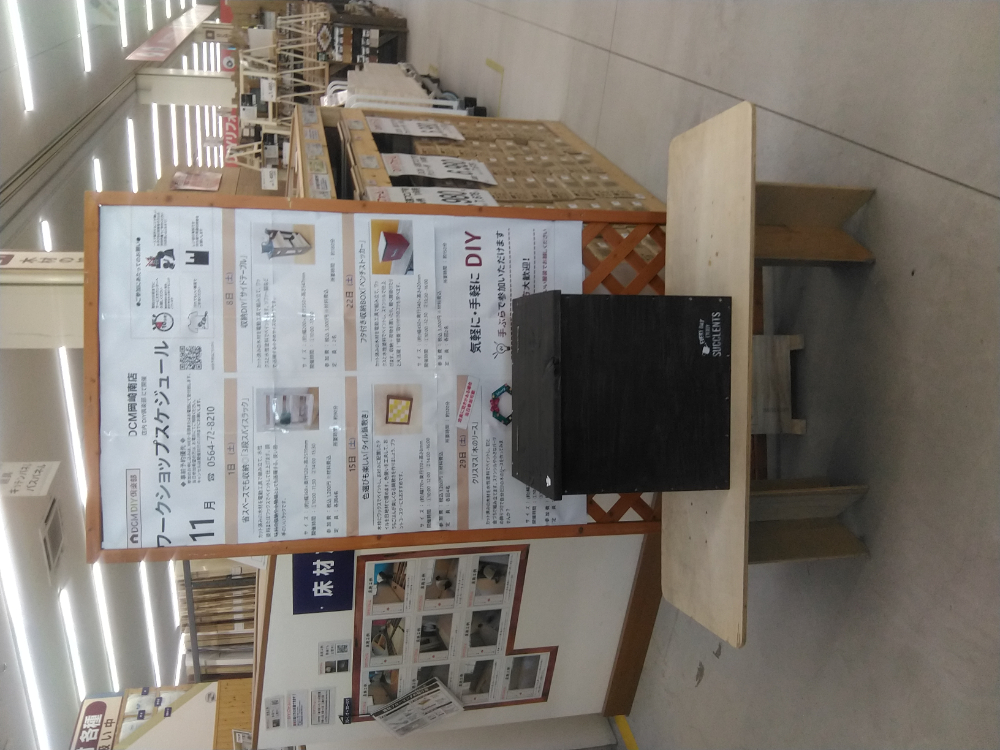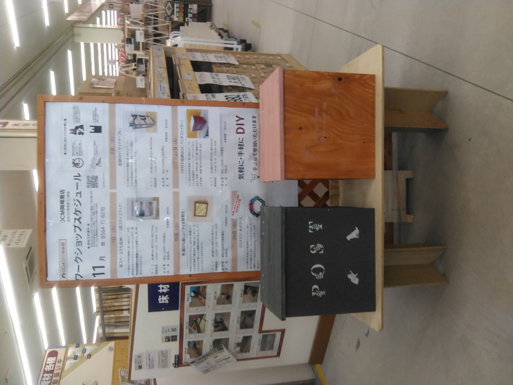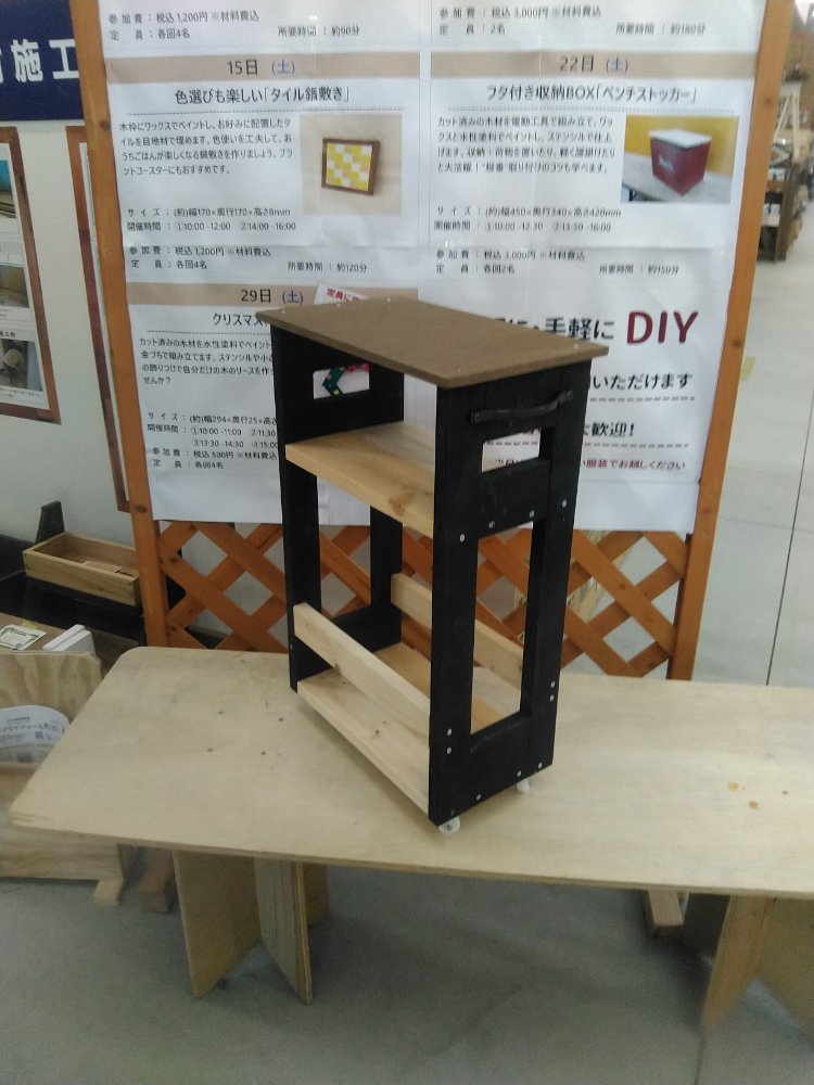 カット済みの木材を電動工具で組み立て、水性塗料やワックスなどでペイントします。小さめの観葉植物や多肉植物のディスプレイにおすすめの作品です。それぞれのボックスは取り外して持ち運べるので、お手入れや入れ替えも便利です。