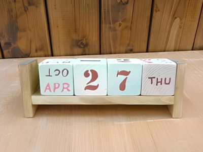 カット済みの木材を木工用接着剤で組み立て、水性塗料でペイントします。毎日どんな一日が始まるかワクワクしながら、サイコロ型の木をくるっと回してみましょう。