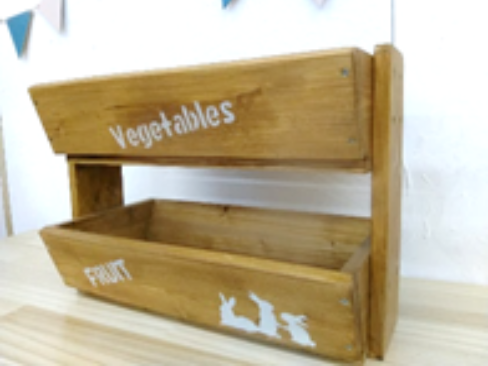 マイスター工房合同企画!野菜などを収納するのに便利な「マルシェラック」を作製してみませんか?2段になっているので分けて収納でき、取り出しやすい形状です♪サイズは大きめのジャガイモが10~15個、もしくは人参が10個入るサイズです。