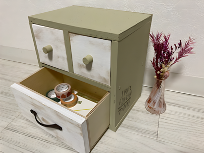 カット済みの木材を電動工具で組み立て、水性塗料でペイントします。お気に入りの小物や文房具、アクセサリー入れにおすすめの作品です。お気に入りの小物や文房具、アクセサリー入れにおすすめの作品です。