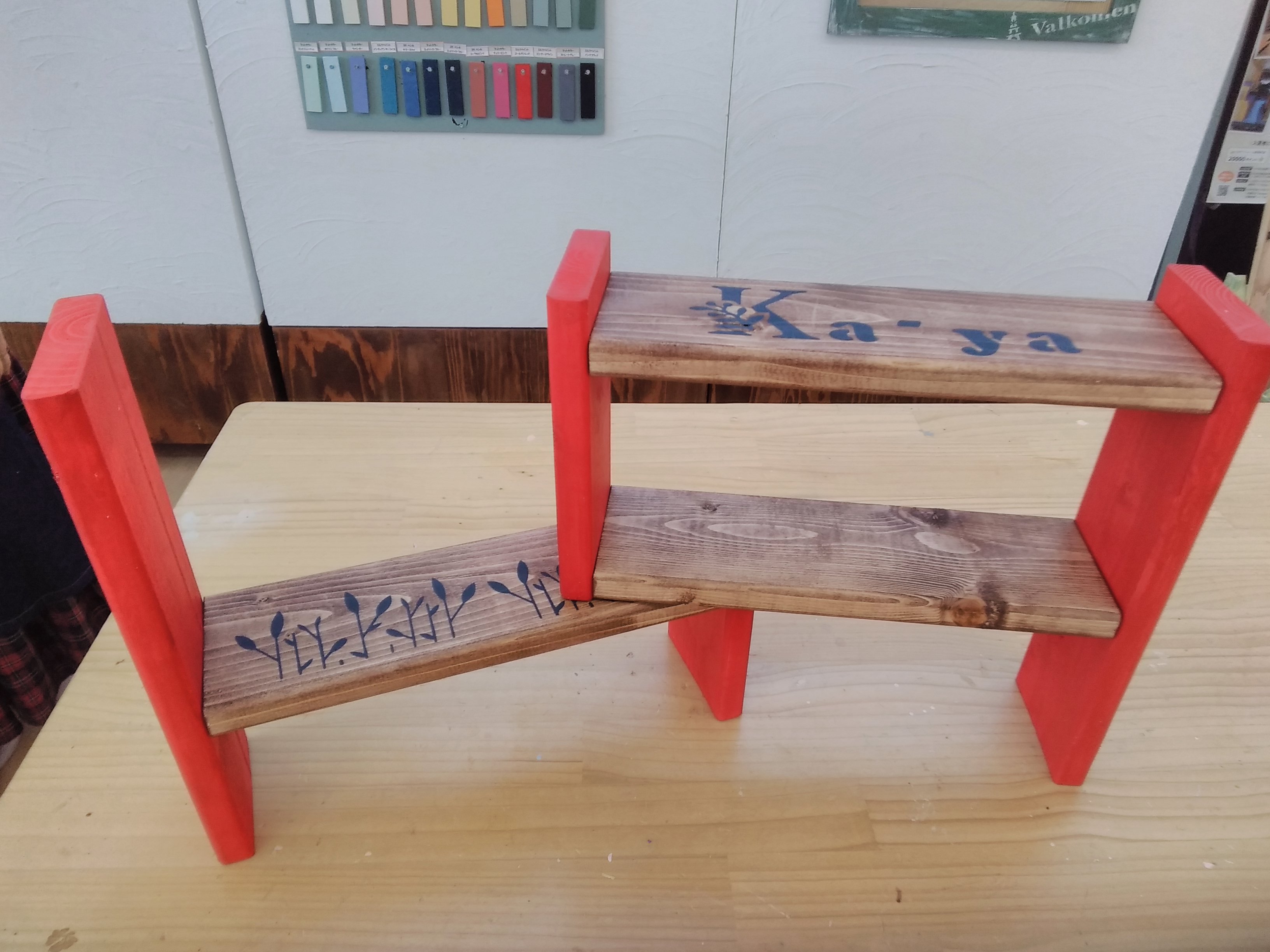 【午後1回の開催です】カット済みの木材を電動工具で組み立て、水性塗料またはワックスでペイントして仕上げます。調味料の収納や小物棚としても活躍する、使い勝手のいいラックです。