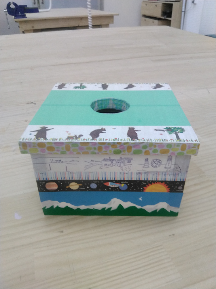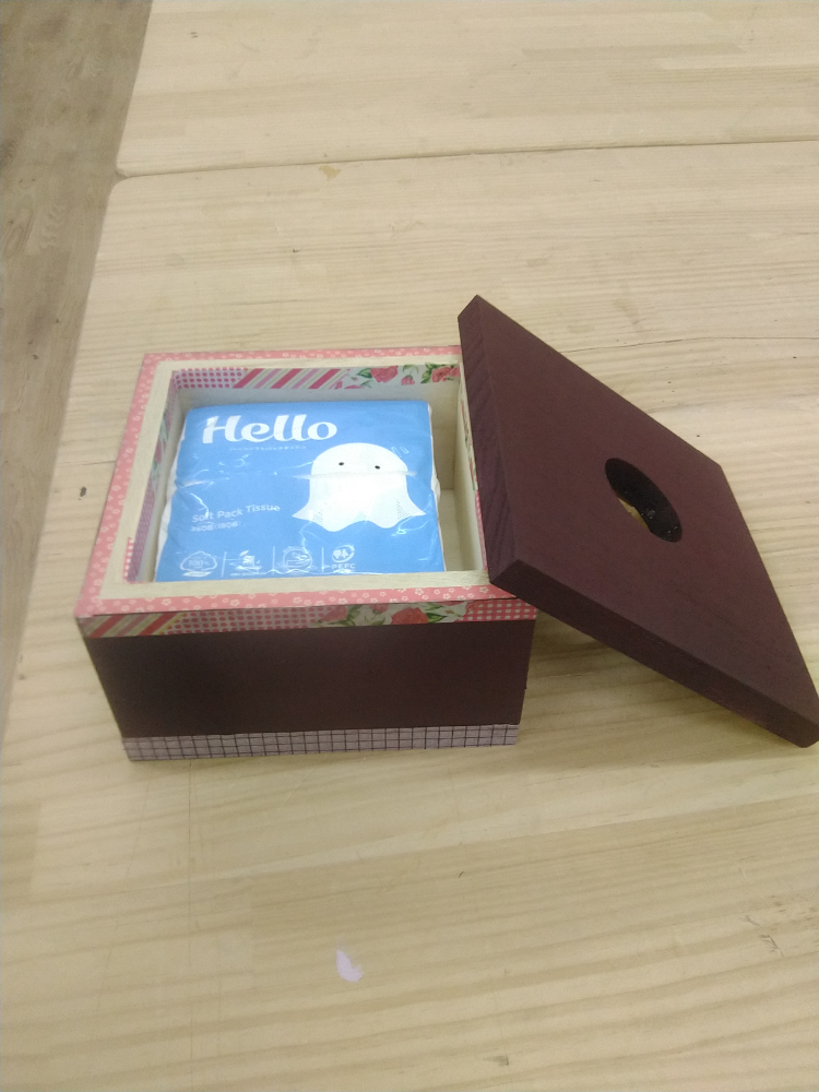 【午後1回の開催です】カット済みの木材を電動工具で組み立て、ワックスでペイントします。持ち運びに便利な持ち手付きです。開いたまま見せる収納として使ってもおしゃれなスパイスBOXです。丁番の上手な付け方や、掛け金の取付方法を学ぶことができます。
