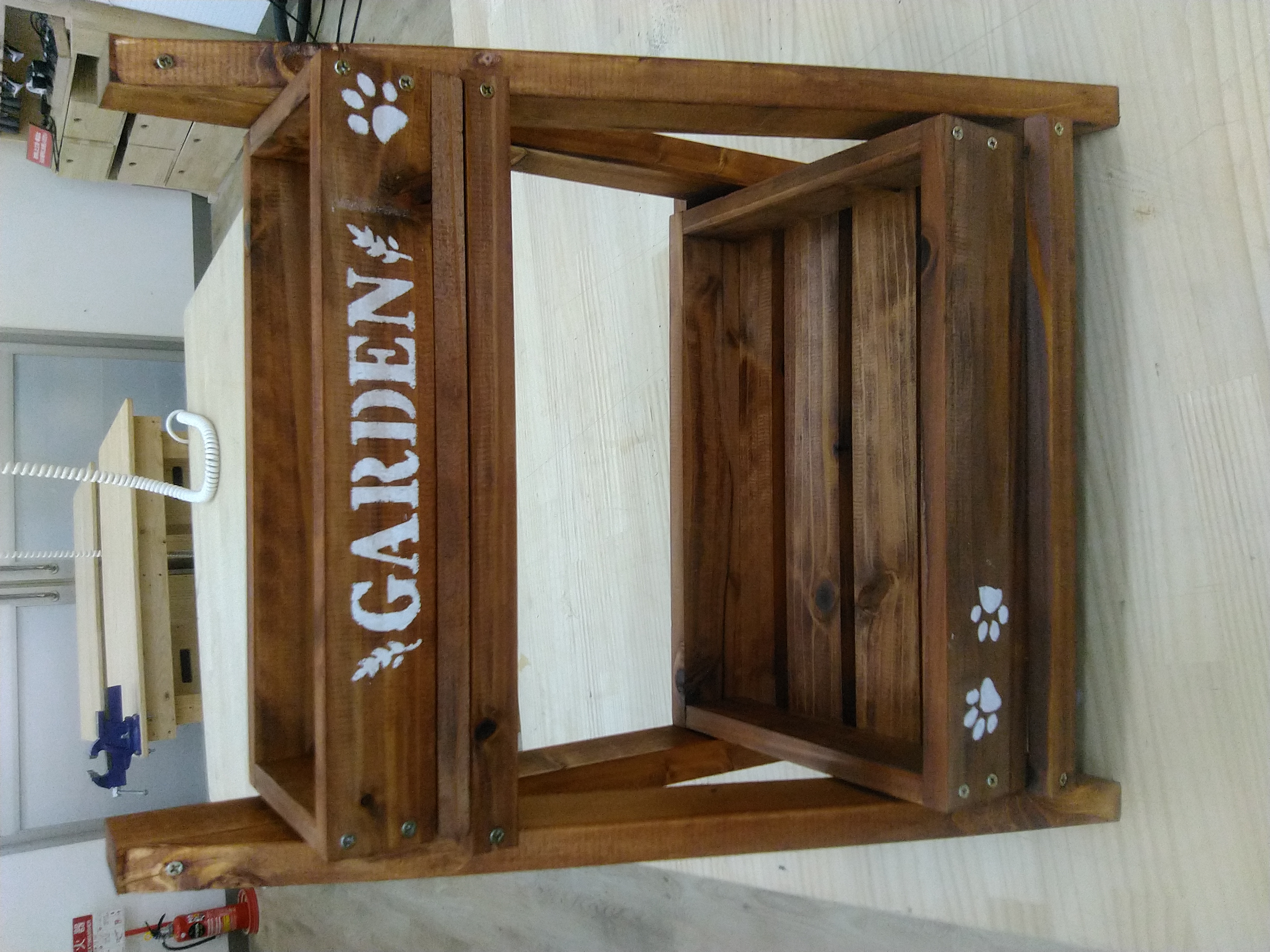 【午後1回の開催です】カット済みの木材を電動工具で組み立て、ワックスと水性塗料でペイントします。肉球型にくり抜いた引き出しがポイントです。またお子さん、お孫さんのおままごとや、ワンちゃんやネコちゃんのクローゼットとして背板にペットの名前をステンシルできます。