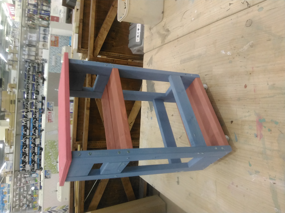 【午後1回の開催です】カット済みの木材を電動工具で組み立て、水性塗料などで塗装します。小物置きや鉢台など、飾り棚として使える小型のベンチです。鉢花だけでなく、多肉植物や観葉植物など使い方は様々!お庭のアクセントにいかがですか?