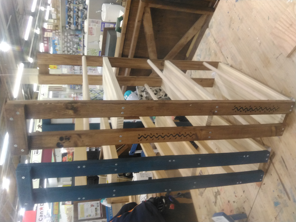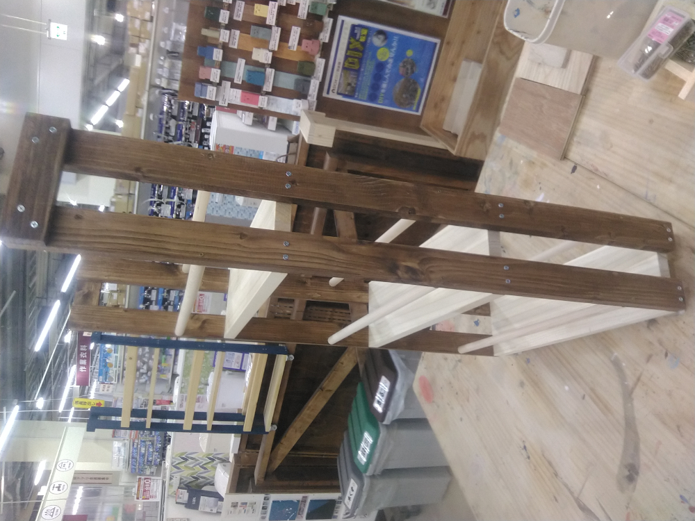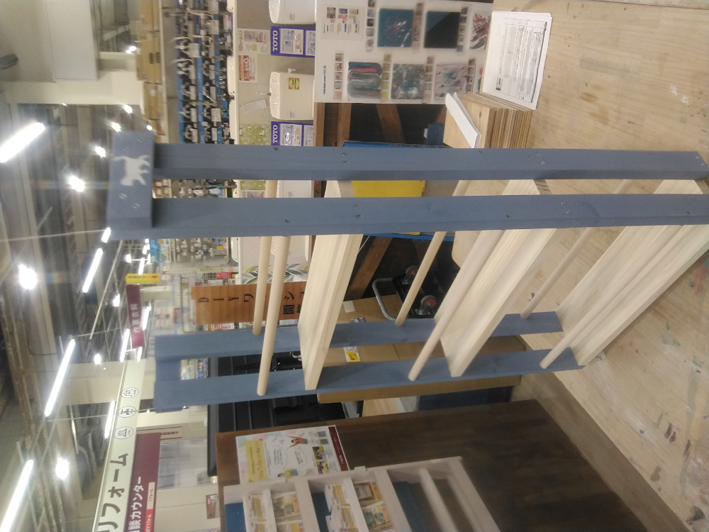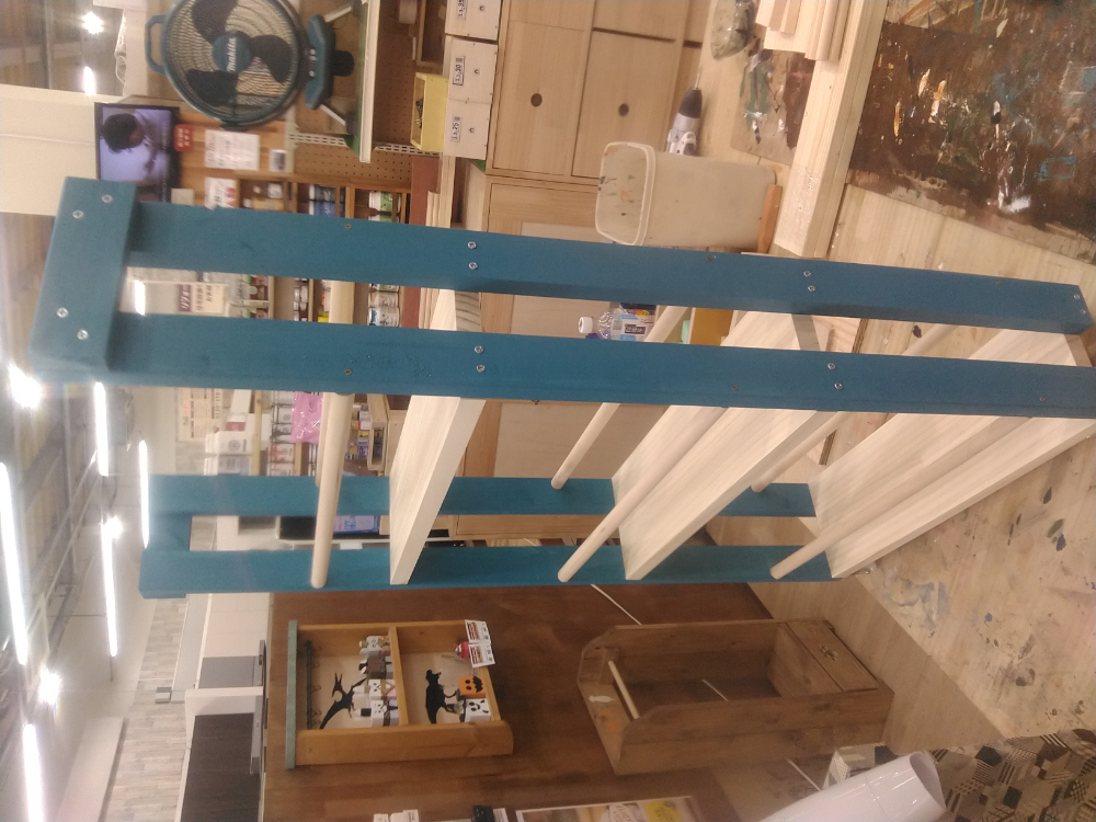 【午前1回の開催です】カット済みの木材を電動工具で組み立て、ワックスと水性塗料でペイントします。棚板を脚部にはめ込むだけで組み立てができるので、持ち運びにも便利です。キャンプなどのアウトドアだけでなく、インテリアとしても活躍しそう♪棚と脚の色を工夫してオリジナルのラックをつくりましょう!