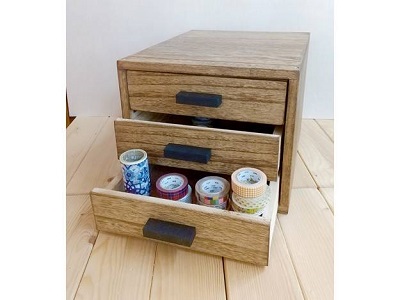 【午前1回の開催です】カット済みの木材を電動工具で組み立て、ワックスでペイントします。使い勝手がよいA4の書類が入るサイズです。小物や文房具、アクセサリーなどの仕分けや収納にも活躍してくれます。