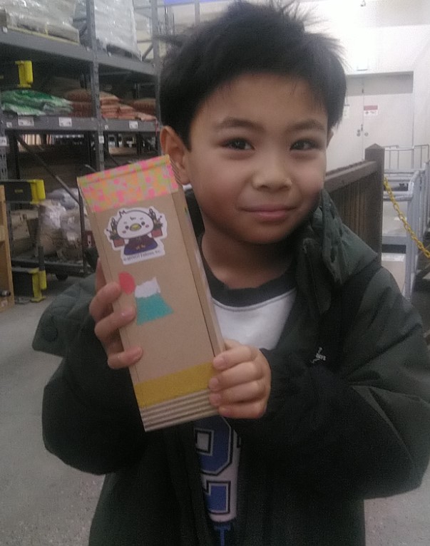【カプセル3個付き(色はランダム)です。】カット済みの木材を木工用接着剤で組み立て、ハンドル部を水性塗料でペイントします。