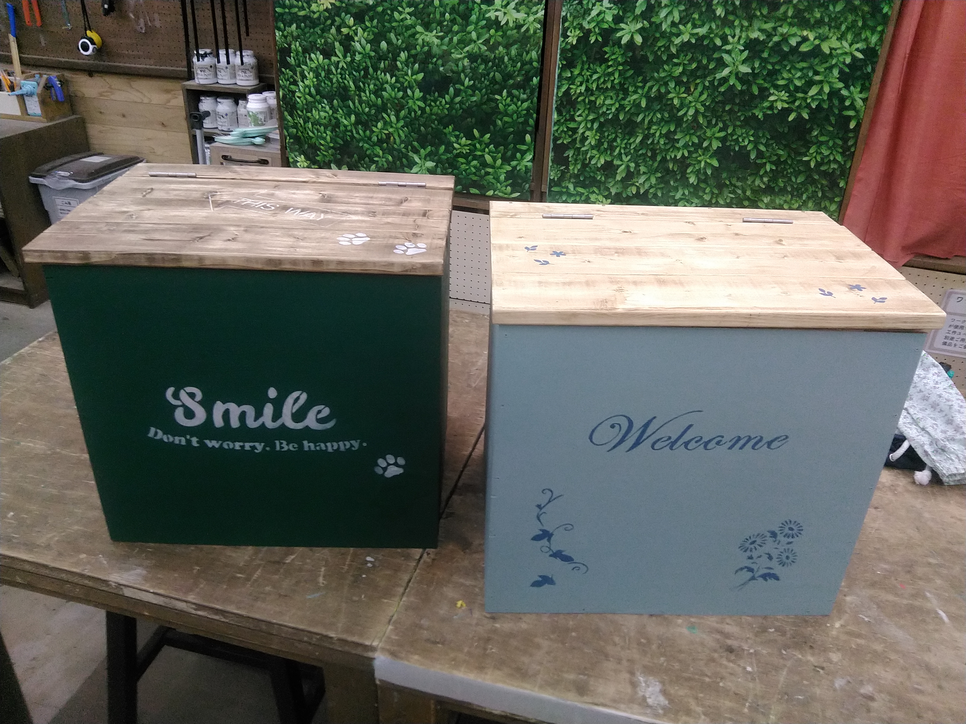【午後1回の開催です】カット済みの木材を電動工具で組み立て、水性塗料や木目の見えるワックスでペイントします。小さめの観葉植物や多肉植物のディスプレイにおすすめの作品です。