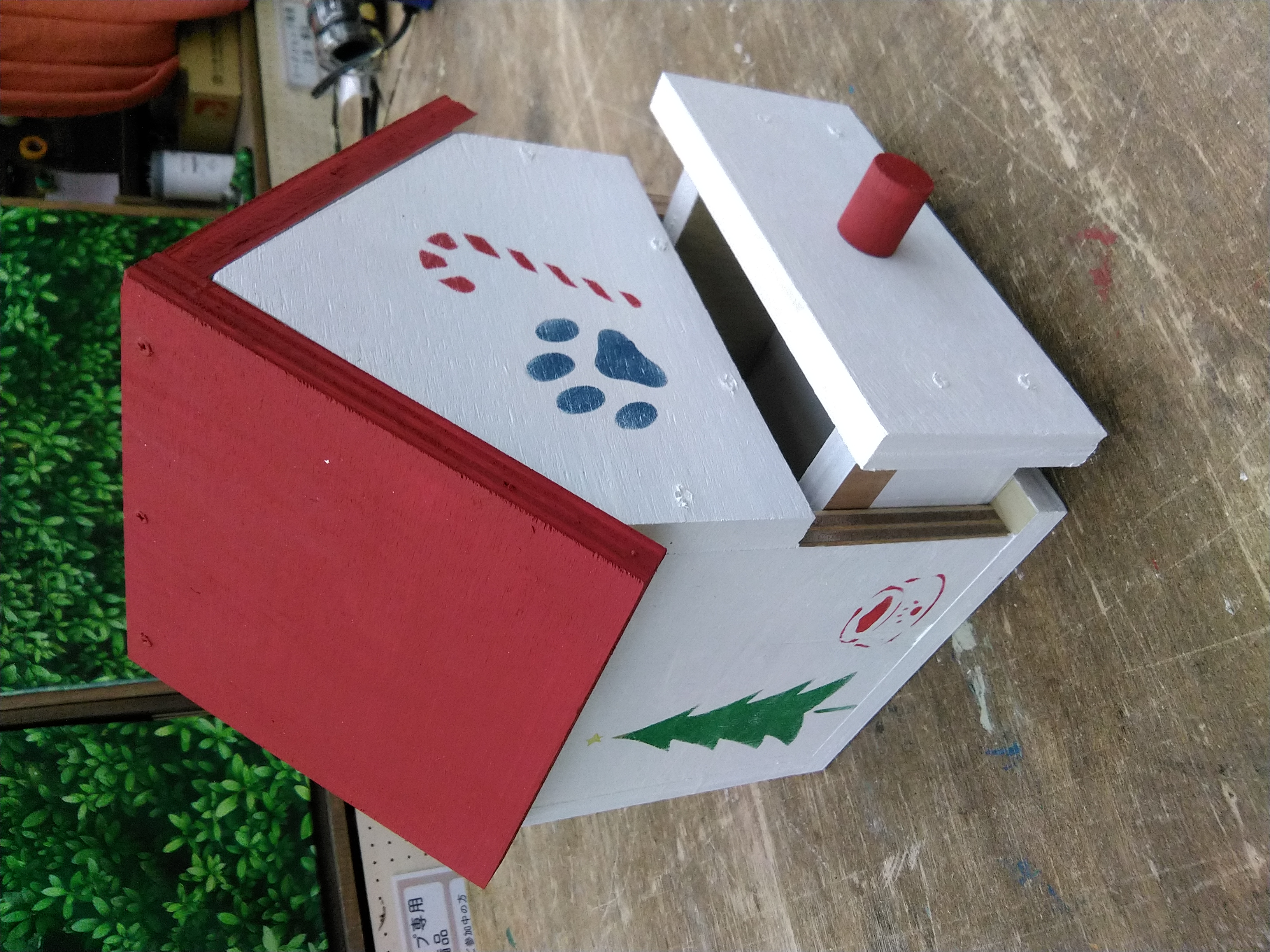 木材に水性塗料でペイントし、木工用接着剤でパーツを取り付けます。お子さまに大人気の木のカメラを思い思いに作ってみましょう。