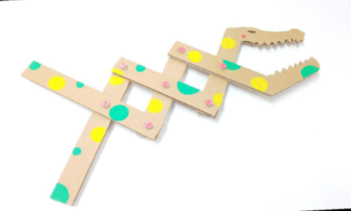 【10~12時、14~16時まで随時受付、当日先着順、資材側入口付近で開催】ダンボールでできた材料をを組み立てて、伸び縮みするマジックハンドを作りましょう。仕上げにポスカでお絵かきしたら完成です。