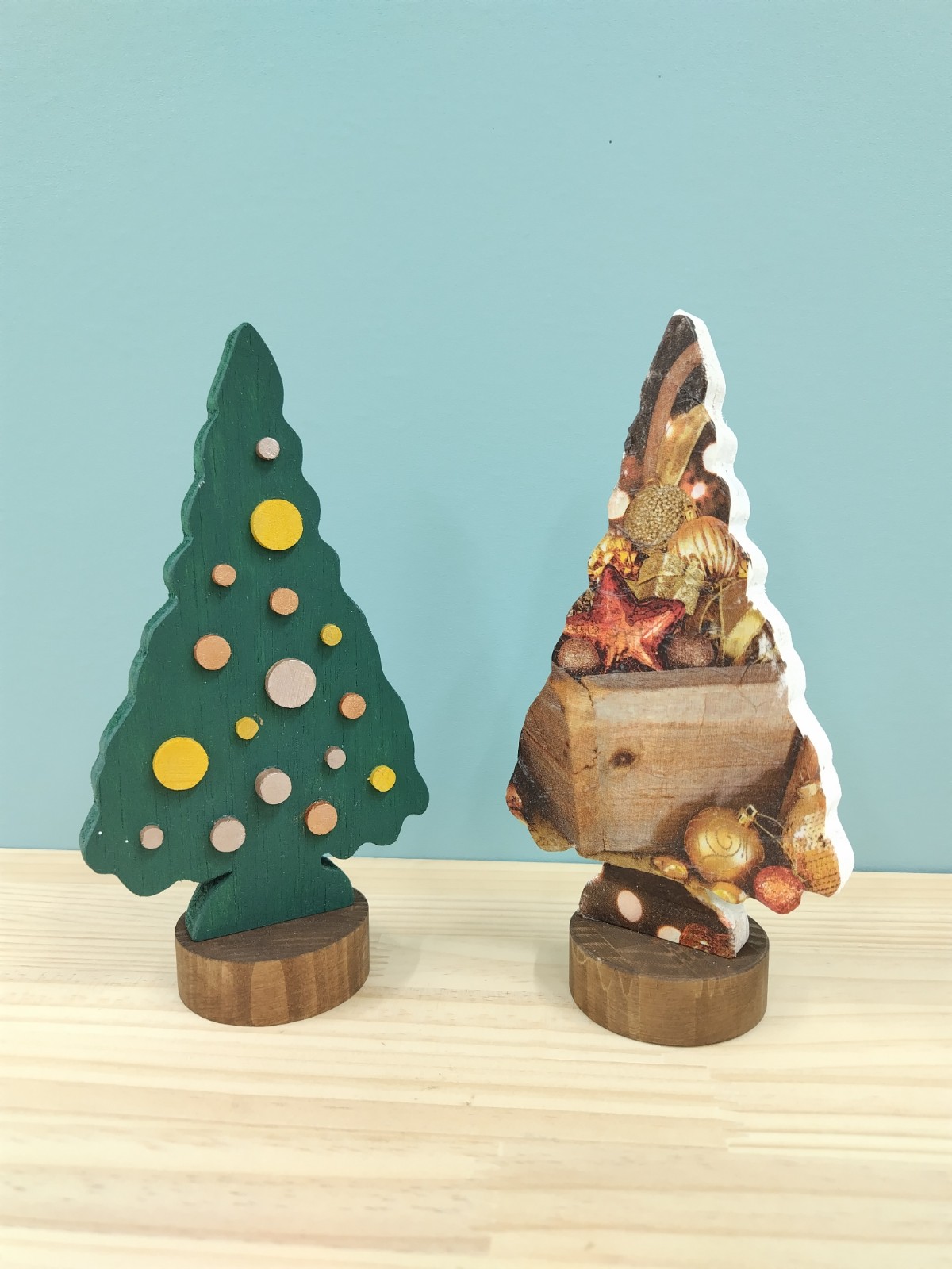 【10~12時、14~16時の間で随時受付、当日先着順、資材側入口付近】予めカット塗装済みの木材を、デコパージュまたは丸棒を貼り付けてデコレーションします。