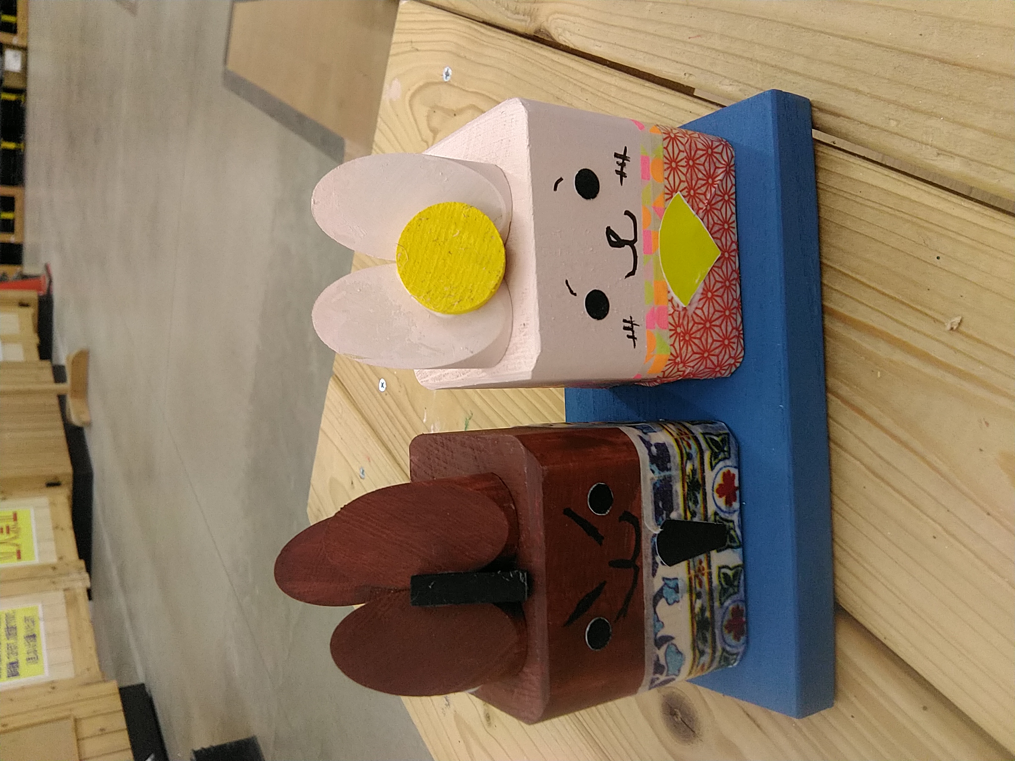 【サイズは人形1体の大きさ2個で1セット台座付き】サイコロのような形の木材を使って作る、可愛らしい動物の雛人形です。ペイントやマスキングテープで、自分だけのオリジナルデザインに仕上げましょう。工具は使わないので、小さなお子さまでも安心して挑戦できます。お子さまの作った作品で、手作りのぬくもりと季節を感じるお部屋づくりをしてみましょう。