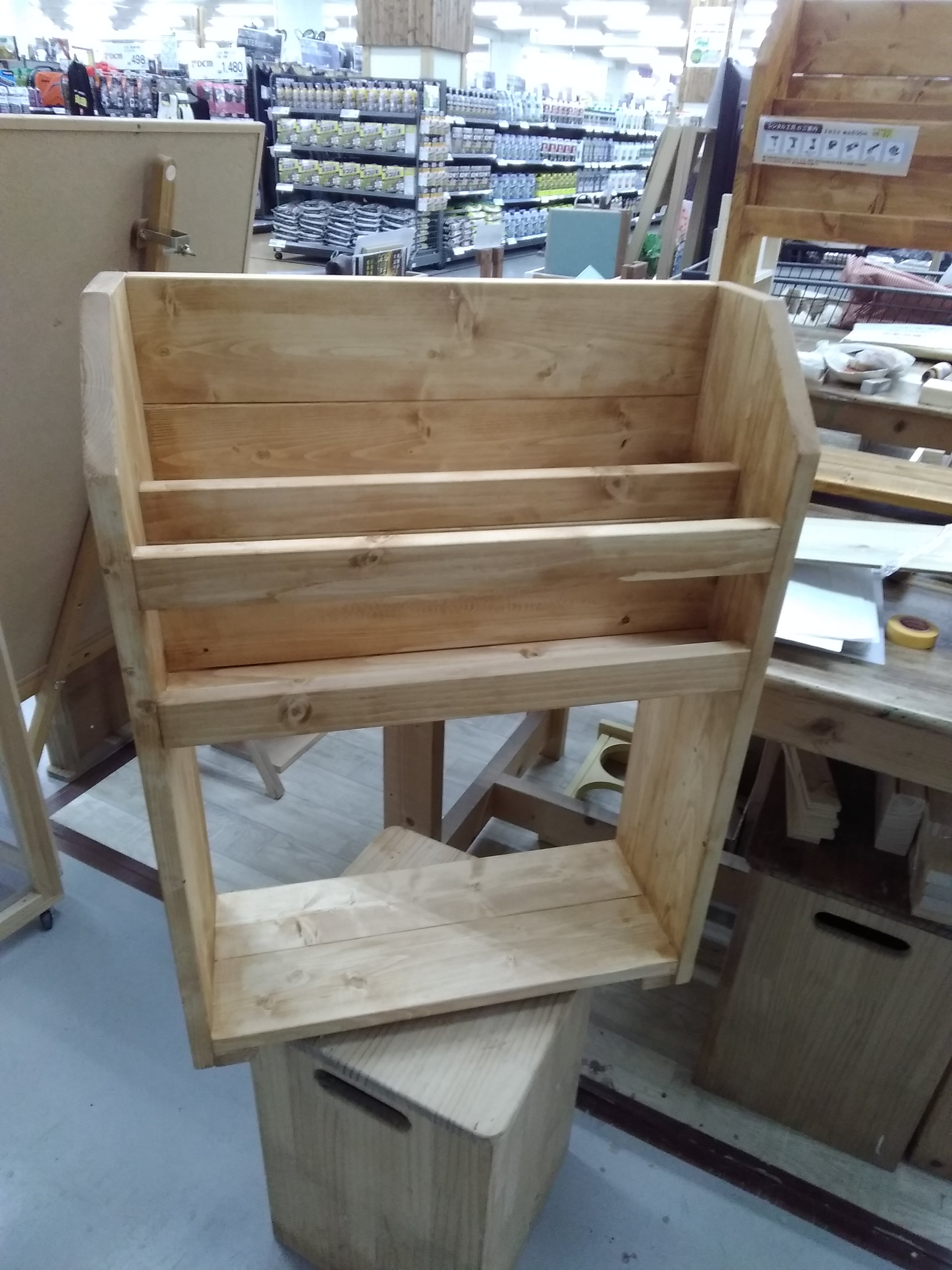 カット済みの木材を電動ドリルドライバーで組み立て、ワックスと水性塗料でペイントします。文庫本やステーショナリーをおしゃれに収納できる、DIY初心者さんにもおすすめの作品です。