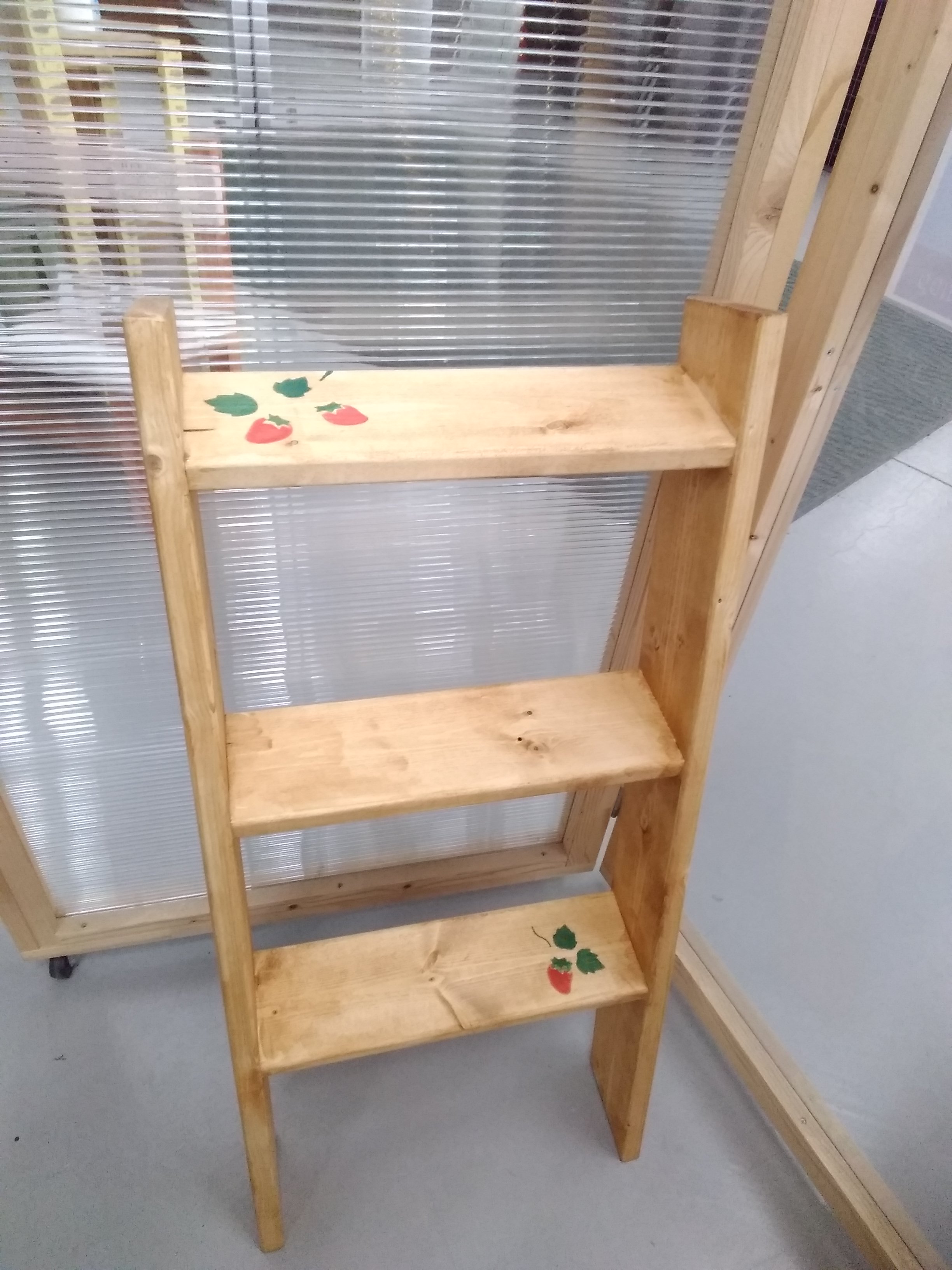 カット済の木材を電動工具で組み立て、水性塗料やワックスで塗装します。中に棚があるのでコップの収納などキッチン周りの収納に大活躍♪キッチンやリビングテーブルの上などちょっとした空間のインテリアにも可愛い作品です。