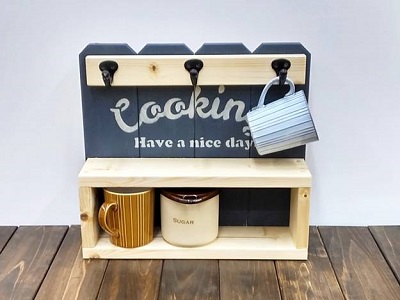 カット済みの木材を電動工具で組み立てる小さな収納棚です。カップは棚に置くだけでなくフックに掛けても収納が可能な上、飾り棚としても使えますので、キッチンやリビングにぴったりです。新しい年に自分でDIYした作品を加えて、生活空間を豊かに彩ってみませんか?